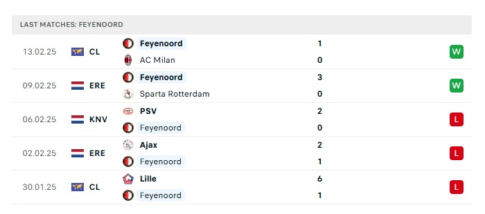 • Phong độ gần đây  Feyenoord