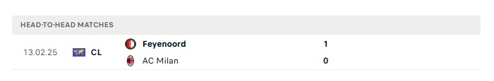 Lịch sử đối đầu AC Milan vs Feyenoord