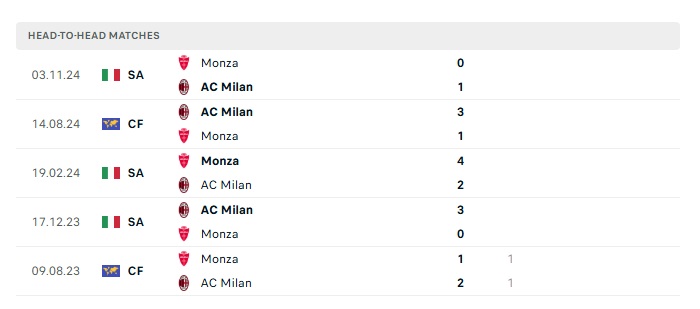 - Kèo tỷ số H2 AC Milan vs Monza: 0-0