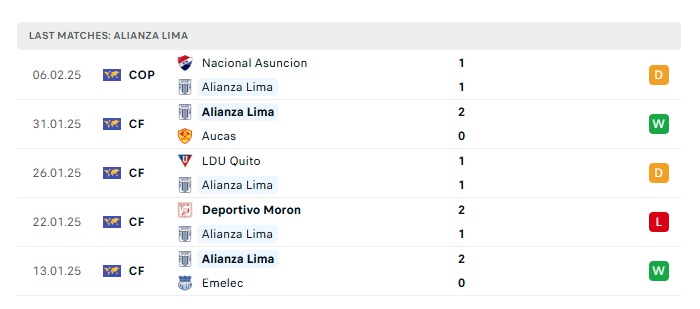 - Phong độ gần đây Alianza Lima
