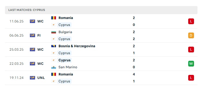 - Phong độ gần đây Síp