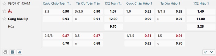 Soi kèo châu Á, kèo Áo vs Síp