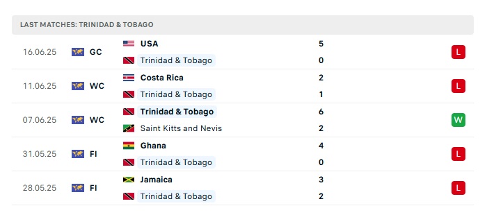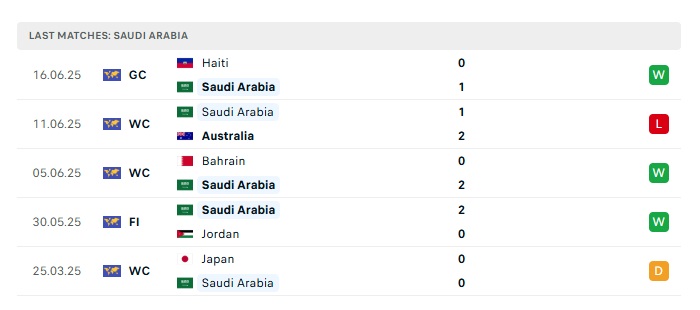 Phong độ gần đây Arập Xêut vs Trinidad & Tobago