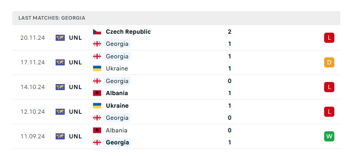 • Phong độ gần đây  Georgia
