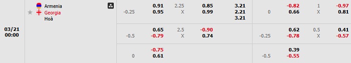 Soi kèo châu Á, kèo Armenia vs Georgia