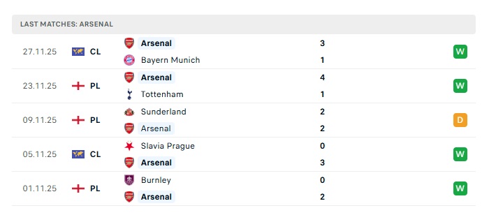 • Phong độ gần đây Arsenal