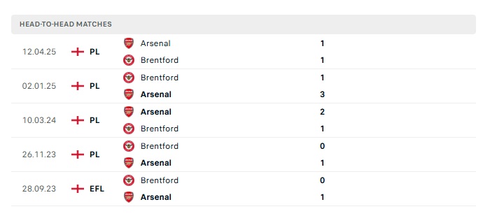 Phong độ gần đây Arsenal vs Brentford