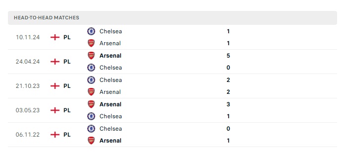 • Kèo tỷ số H2 Arsenal vs Chelsea: 1-1