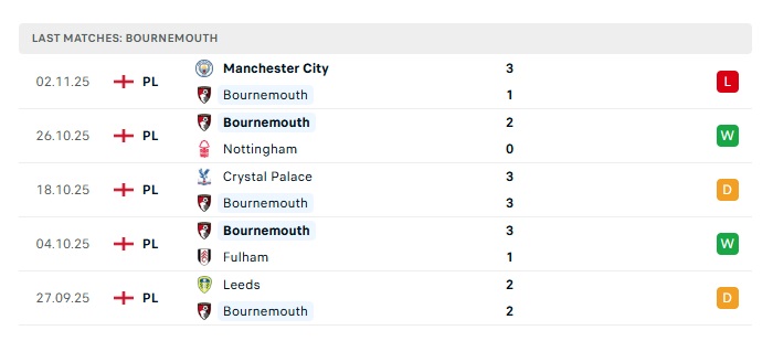 - Phong độ gần đây Bournemouth