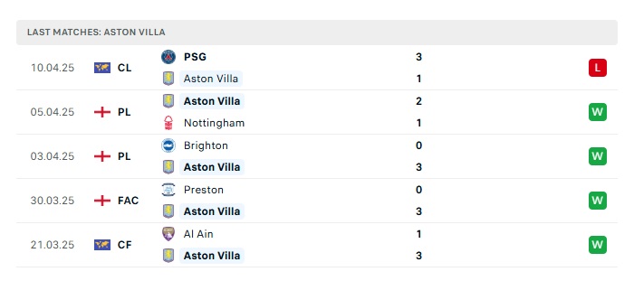Hiện tại, cả hai đội đều đang có phong độ thi đấu rất ổn định và Aston Villa không quá lép vế trước đối thủ. Trong 9 trận đấu gần nhất, đội chủ nhà đã thắng 8 và thua đúng 1 lần duy nhất trước PSG. Trong khi đó thì đội khách đang có cho mình chuỗi 7 trận đấu liên tiếp toàn thắng. Do đó, các chuyên gia đều tin rằng đội khách sẽ có cho mình 1 điểm dễ dàng và thắng luôn nếu họ thực sự muốn.
