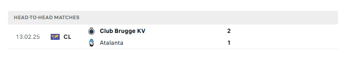 Lịch sử đối đầu Atalanta vs Club Brugge