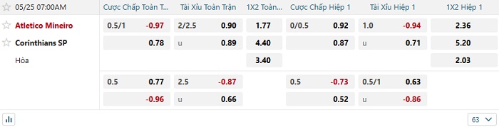 Bảng kèo bóng đá Atletico MG vs Corinthians