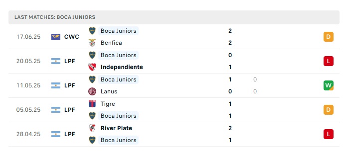 • Phong độ gần đây Boca Juniors