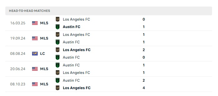 - Kèo tỷ số H2 Austin FC vs Los Angeles FC: 0-0