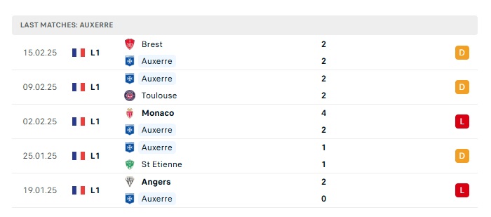 • Phong độ gần đây Auxerre