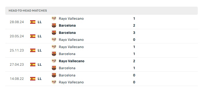 Lịch sử đối đầu Barcelona vs Rayo Vallecano