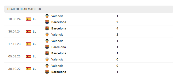 - Kèo tỷ số H2 Barcelona vs Valencia: 3-1