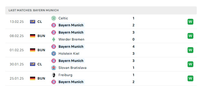 - Phong độ gần đây Bayern Munich
