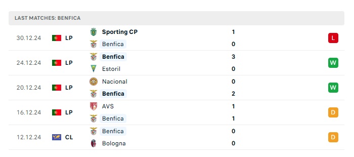 - Phong độ gần đây Benfica
