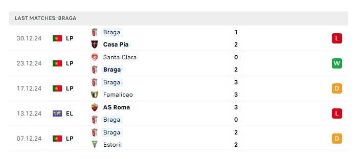 - Phong độ gần đây Braga