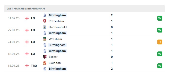 - Phong độ gần đây Birmingham