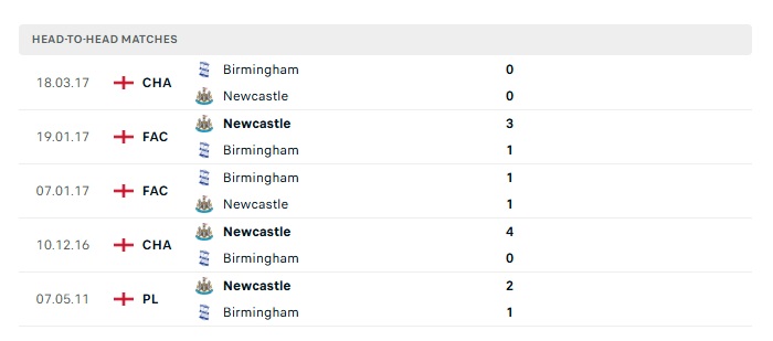 Lịch sử đối đầu Birmingham vs Newcastle