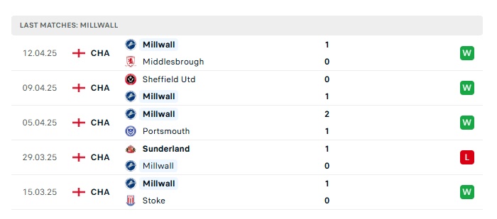 - Phong độ gần đây Millwall