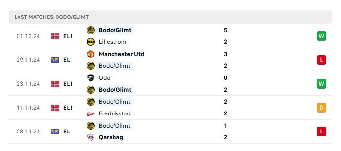 • Phong độ gần đây Bodo Glimt