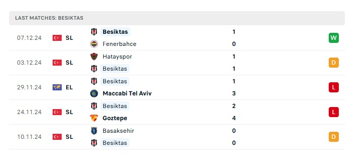• Phong độ gần đây Besiktas
