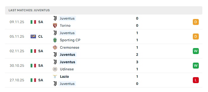 - Phong độ gần đây Juventus