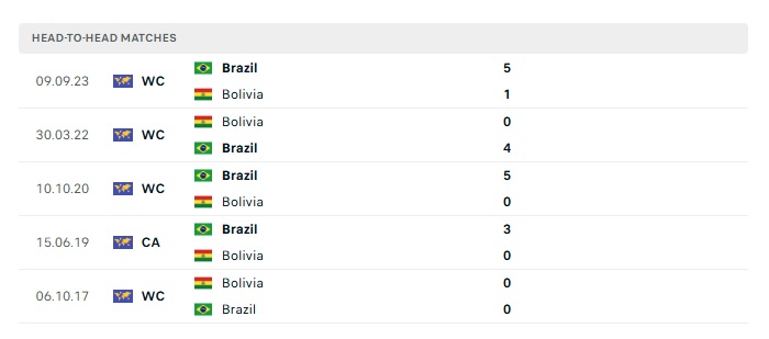 Lịch sử đối đầu Bolivia vs Brazil
