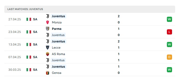 - Phong độ gần đây Juventus