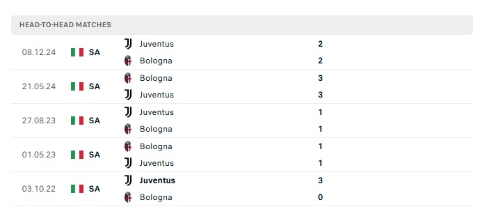 Phong độ gần đây Bologna vs Juventus