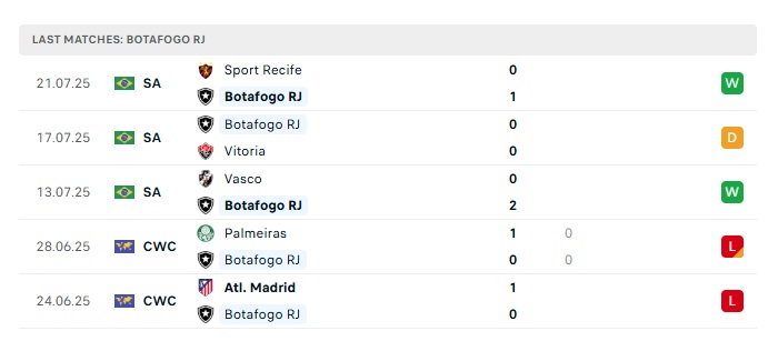 - Phong độ gần đây Botafogo