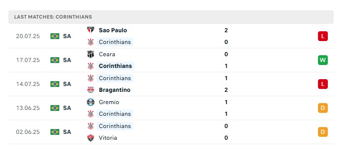 - Phong độ gần đây Corinthians