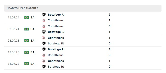 Phong độ gần đây Botafogo vs Corinthians