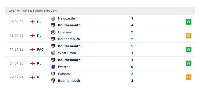 • Phong độ gần đây Bournemouth