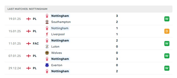 • Phong độ gần đây Nottingham Forest
