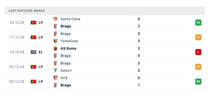 - Phong độ gần đây Braga