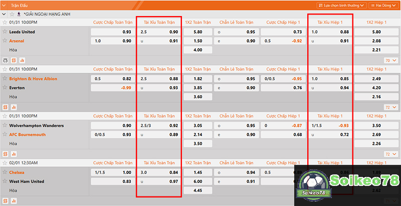 Đối với kèo tài xỉu, ta sẽ có rất nhiều mốc O/U để dự đoán. Nhà cái uy tín sẽ tung ra rất nhiều kèo cược trong 1 hiệp đấu và cả trận. Mỗi một kèo sẽ có một mốc tỷ lệ O/U khác nhau. Khi soi kèo thì bạn phải thẩm định, đánh giá chính xác về khả năng nổ của từng kèo cược.