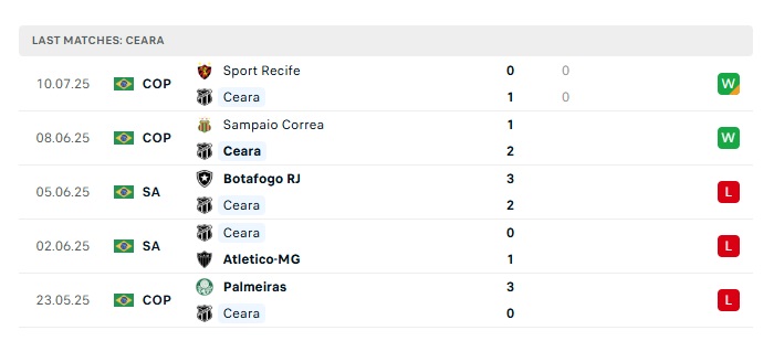 • Phong độ gần đây Ceara