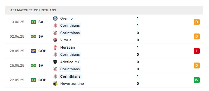 • Phong độ gần đây Corinthians/SP