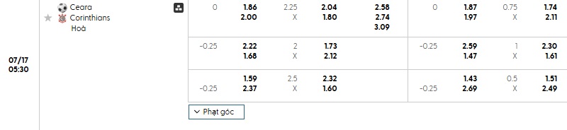 Soi kèo châu Á, kèo Ceara vs Corinthians/SP