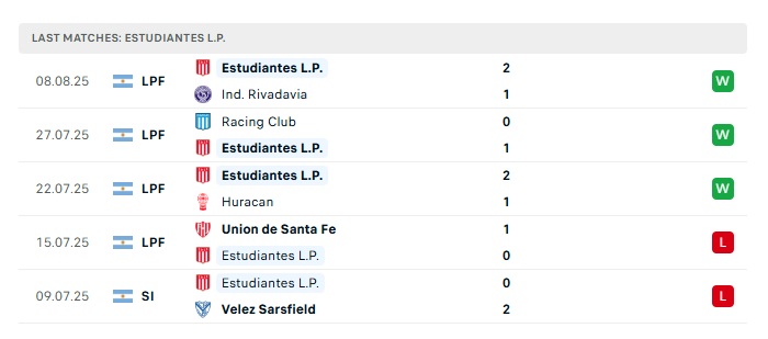 - Phong độ gần đây Estudiantes LP