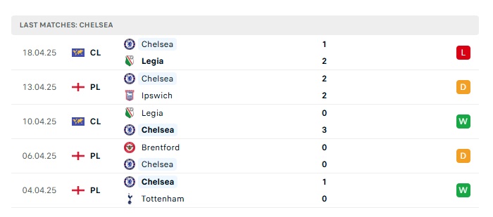 - Phong độ gần đây Chelsea