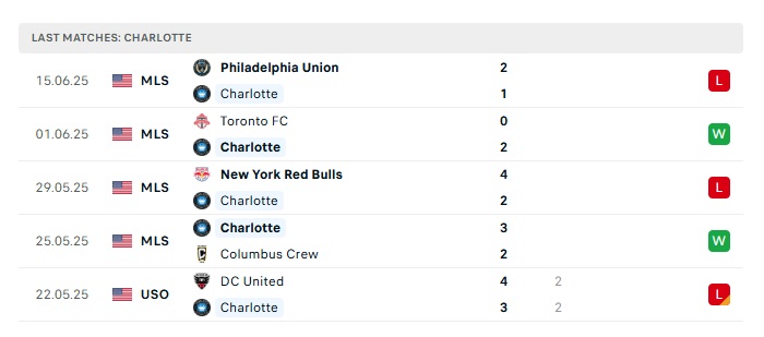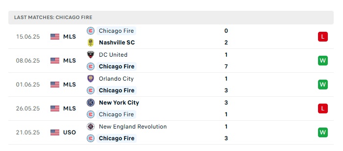 Phong độ gần đây Chicago Fire vs Charlotte FC