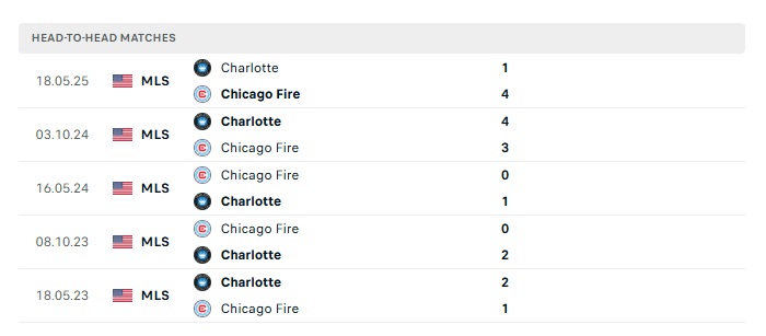 Lịch sử đối đầu Chicago Fire vs Charlotte FC
