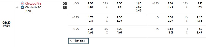 Soi kèo châu Á, kèo Chicago Fire vs Charlotte FC