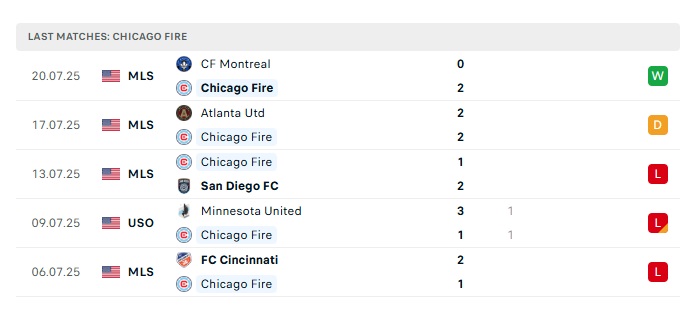 - Phong độ gần đây Chicago Fire