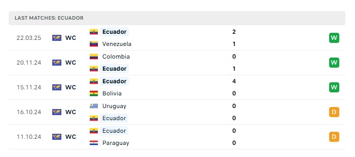 - Phong độ gần đây Ecuador